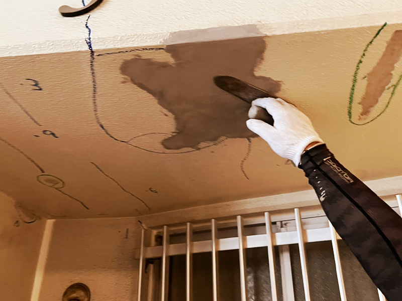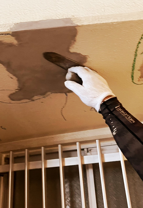 「見えない場所」こそ、プロの腕が試されます。 ひどい劣化やクラック(ひび割れ)も見逃さず、洗浄から補修まで徹底します。また、材料置き場や現場を常に美しく保つ「整理整頓」こそが、細やかな良い仕事の基本だと考えています。